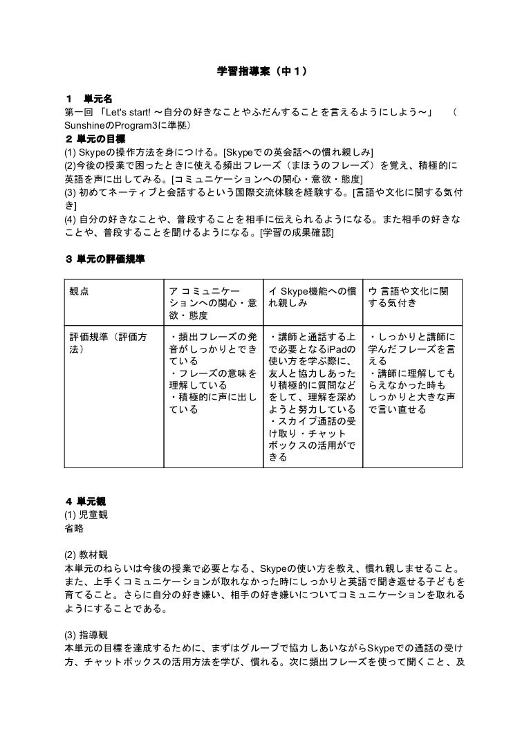 中学1年生向け Skypeを利用した英語授業 第1回学習指導案
