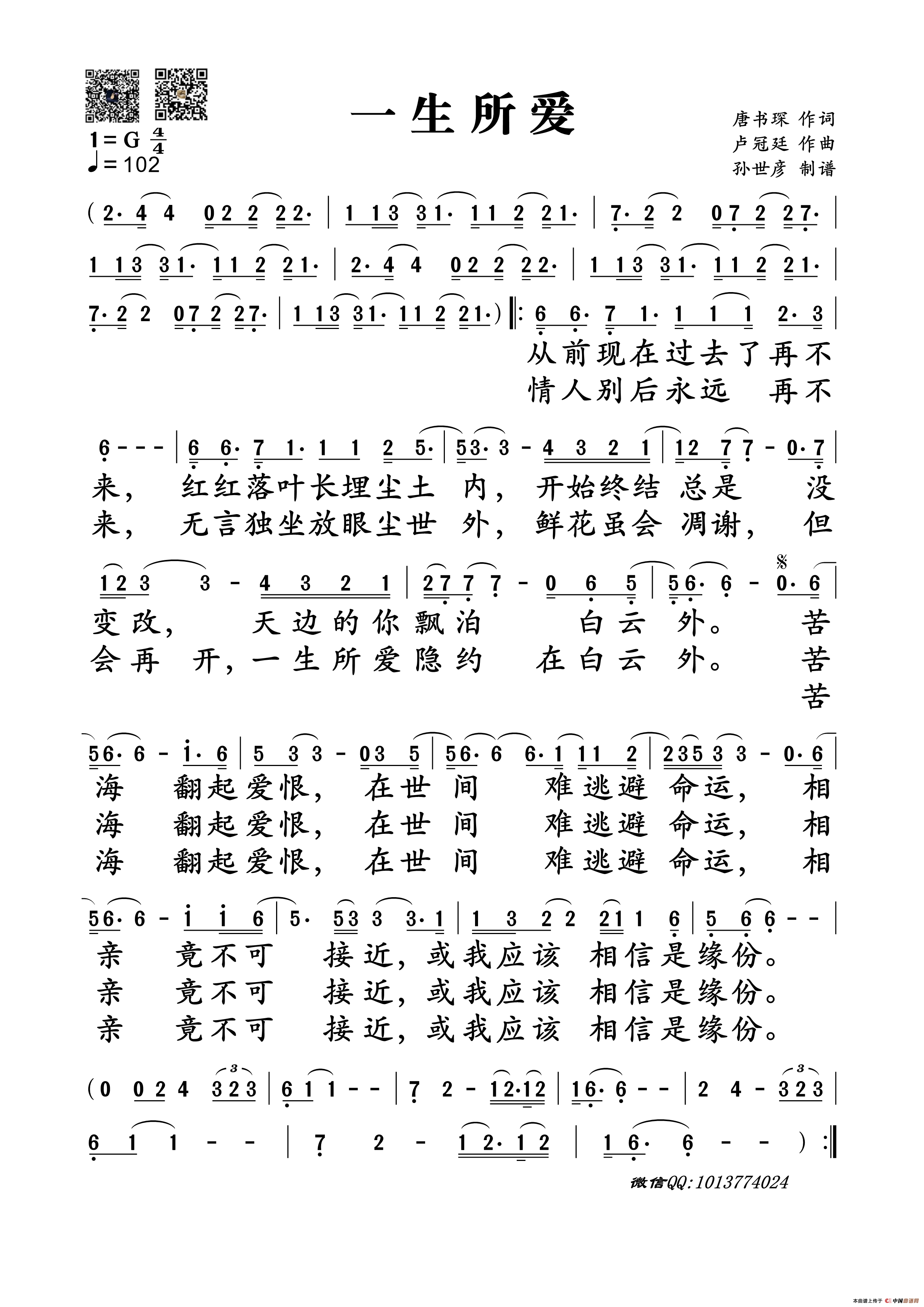 万爱千恩 完整版 郑工个人制谱园地 中国曲谱网