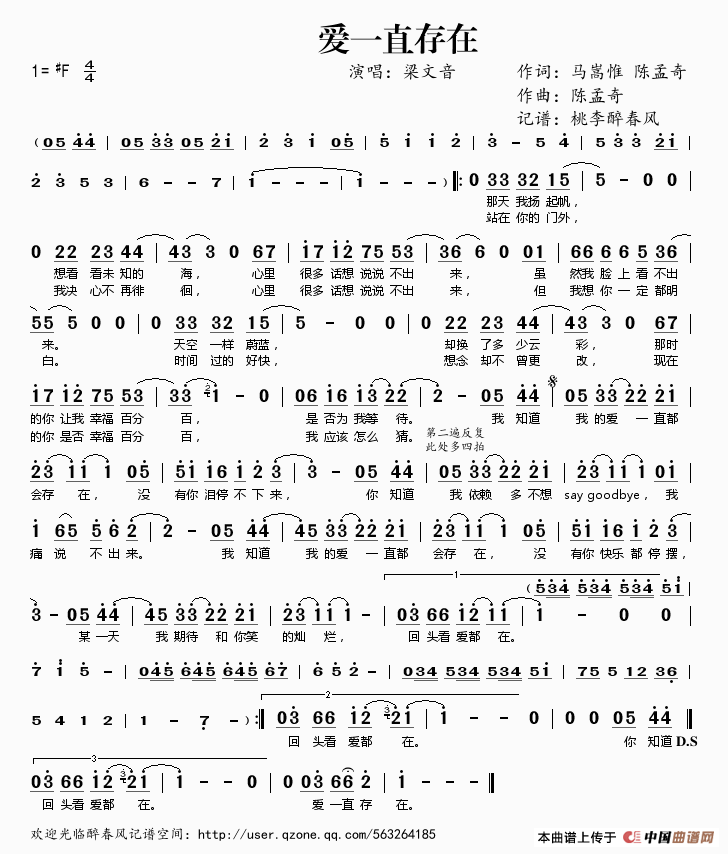 爱一直存在 桃李醉春风个人制谱园地 中国曲谱网